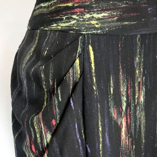 後ろファスナー開き。両脇デザインはドレープ風。